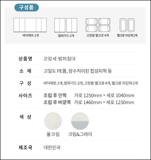 게다가 100% 국내생산이라고 하는데, 만들때 본드를 사용한게 아니라 열로만 접착해서 만든 50mm PE폼을 사용해서 만들었기 때문에 특유의 신제품 냄새가 나지 않았습니다!이런 제품은 구매하면 냄새 때문에 환기시키는 과정이 꼭 필요하거든요. 저도 환기를 며칠 하고 사용하려고 했는데, 냄새가 안 나서 물티슈로 닦고 마른 걸레로 다시 닦고 바로 사용했어요!