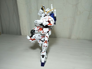 아무튼 드디어 완성된 RG 유니콘입니다 아까도 말씀드렸듯이 놀고 먹선과 테트론 스티커를 최소화 했습니다. 손이 많이 없어질수록 잘 지워지는 탓