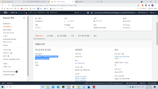 그리고 엔드포인트와 포트링크를 따로 메모장이나 워드를 켜서 복사하고 붙여넣습니다.다음 단계에서 꼭 필요하니까요!여기서 엔드포인트를 설명하면 엔드포인트 도메인 네임에 대한 액세스 즉 RDS 접속하기 위해서는 DNS(도메인)에 대한 액세스의 엔드포인트를 IP라고 생각하면 됩니다.