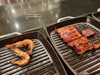 왕새우구이, 포크바베큐립, 양갈비 그리고 등심스테이크가 있습니다