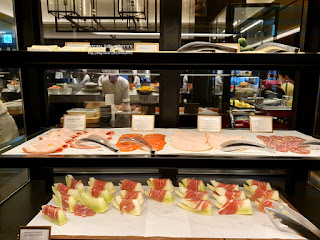 그리고 여기 일식 코너에는 신선도 좋은 생선회와 네 종류의 초밥, 그리고 마키 등이 준비되어 있습니다.